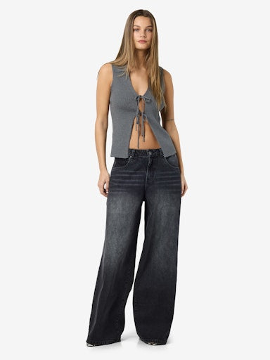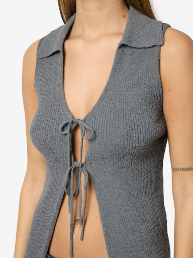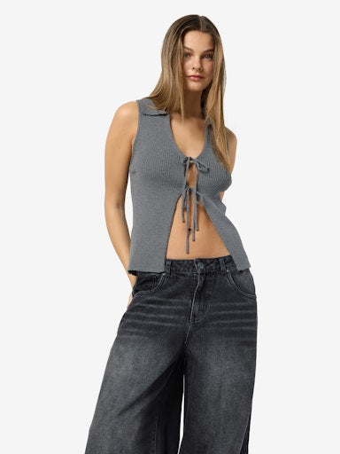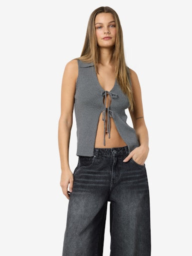 Noisy May Aylin Tie Front Knit Vest CHAR