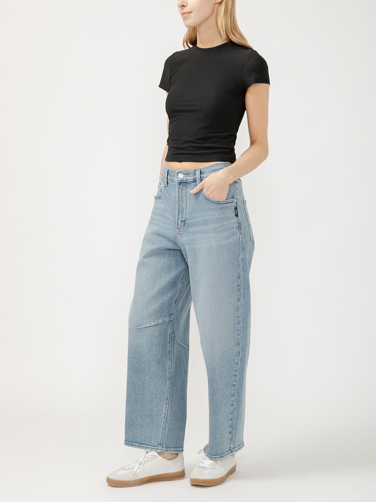 Our high rise barrel leg jeans are the perfect blend of structure and ease. With their relaxed, roomy fit and on-trend wash, they bring effortless style to any outfit. Whether you're dressing them up or keeping it casual, these are a pair you'll keep reaching for.