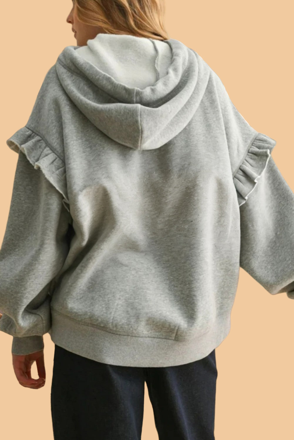 JJTL Opal Ruffle Trim Oversized Hoodie GRY