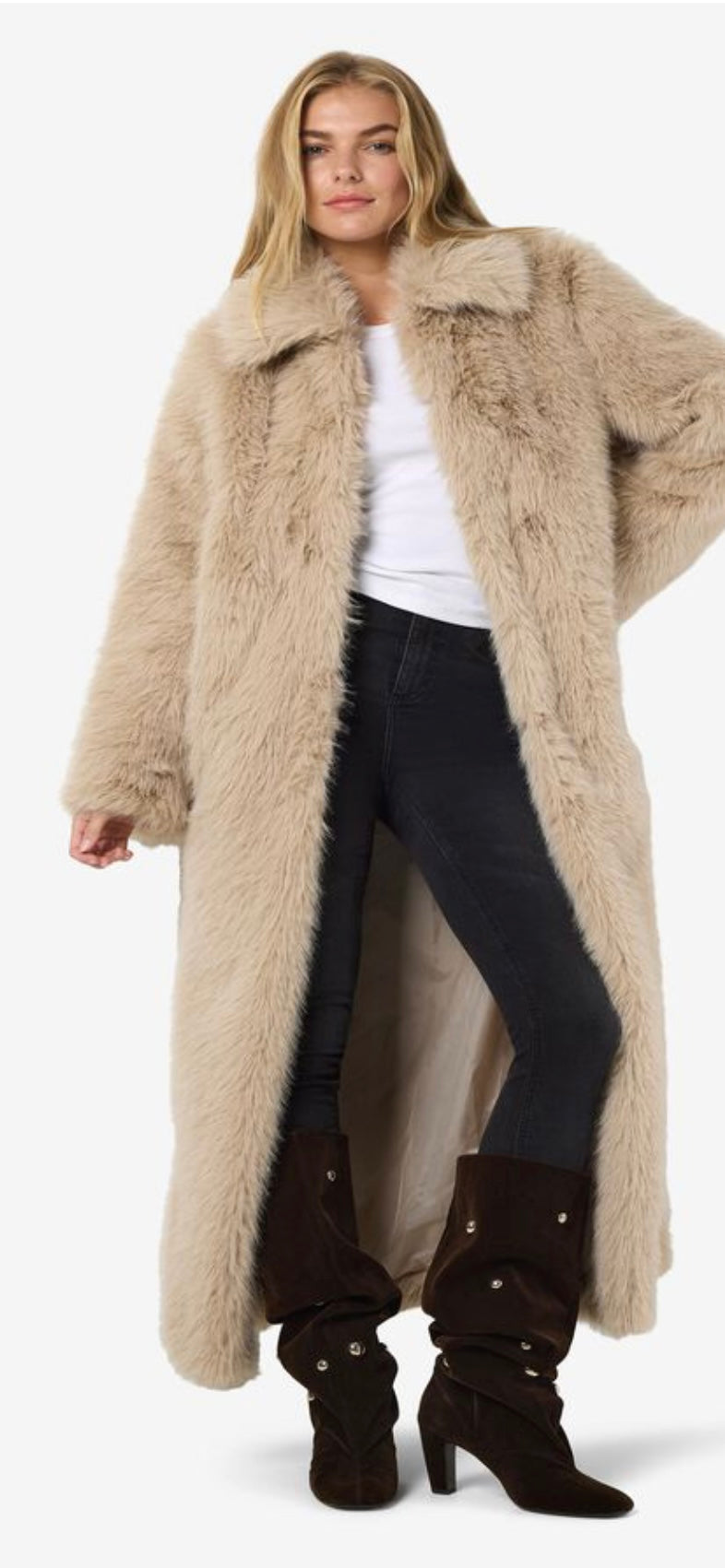 Noisy May Evie Fur X Long Coat OATMEAL