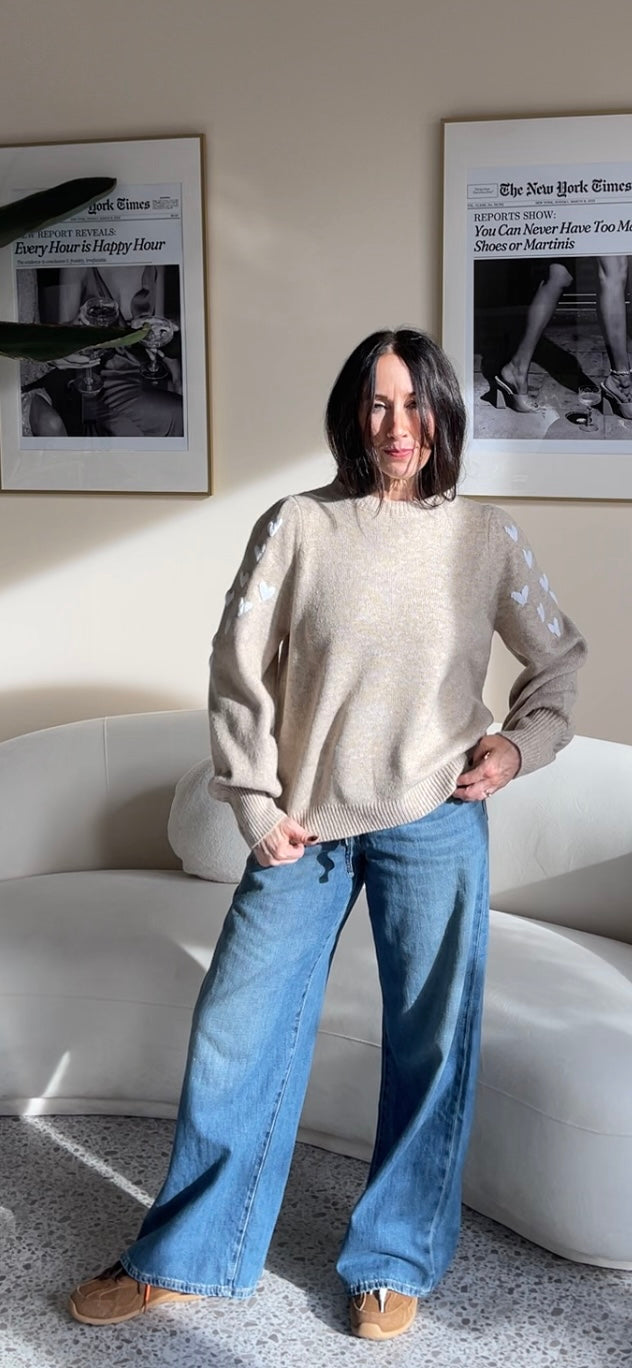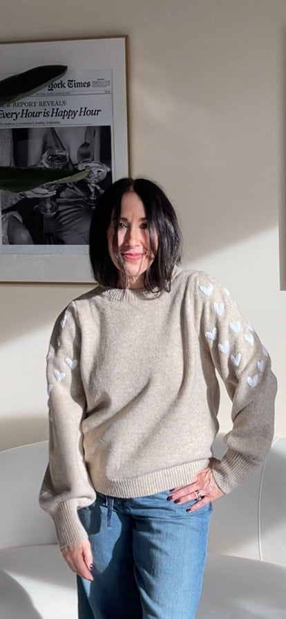 -embroidered hearts on the sleeves