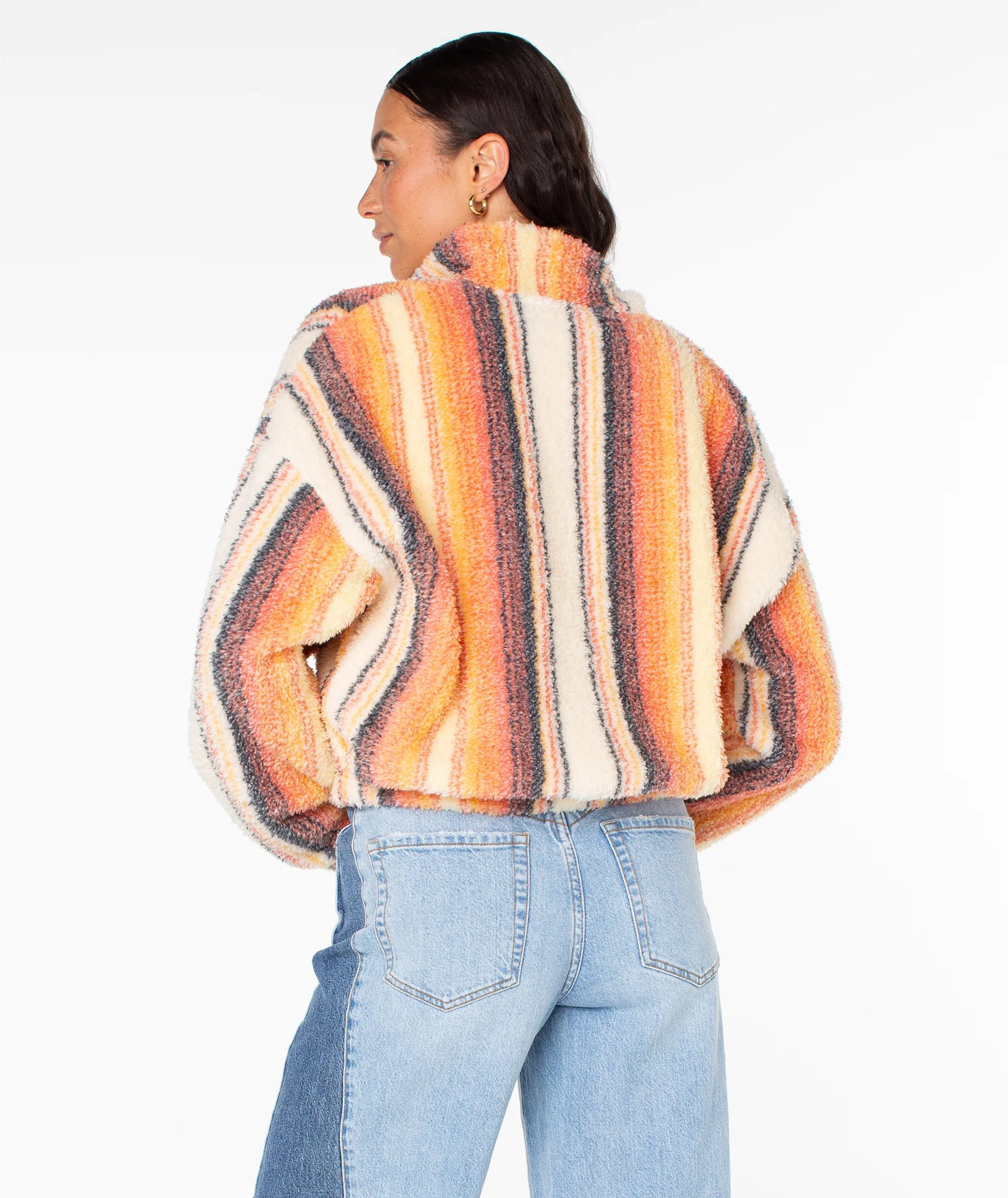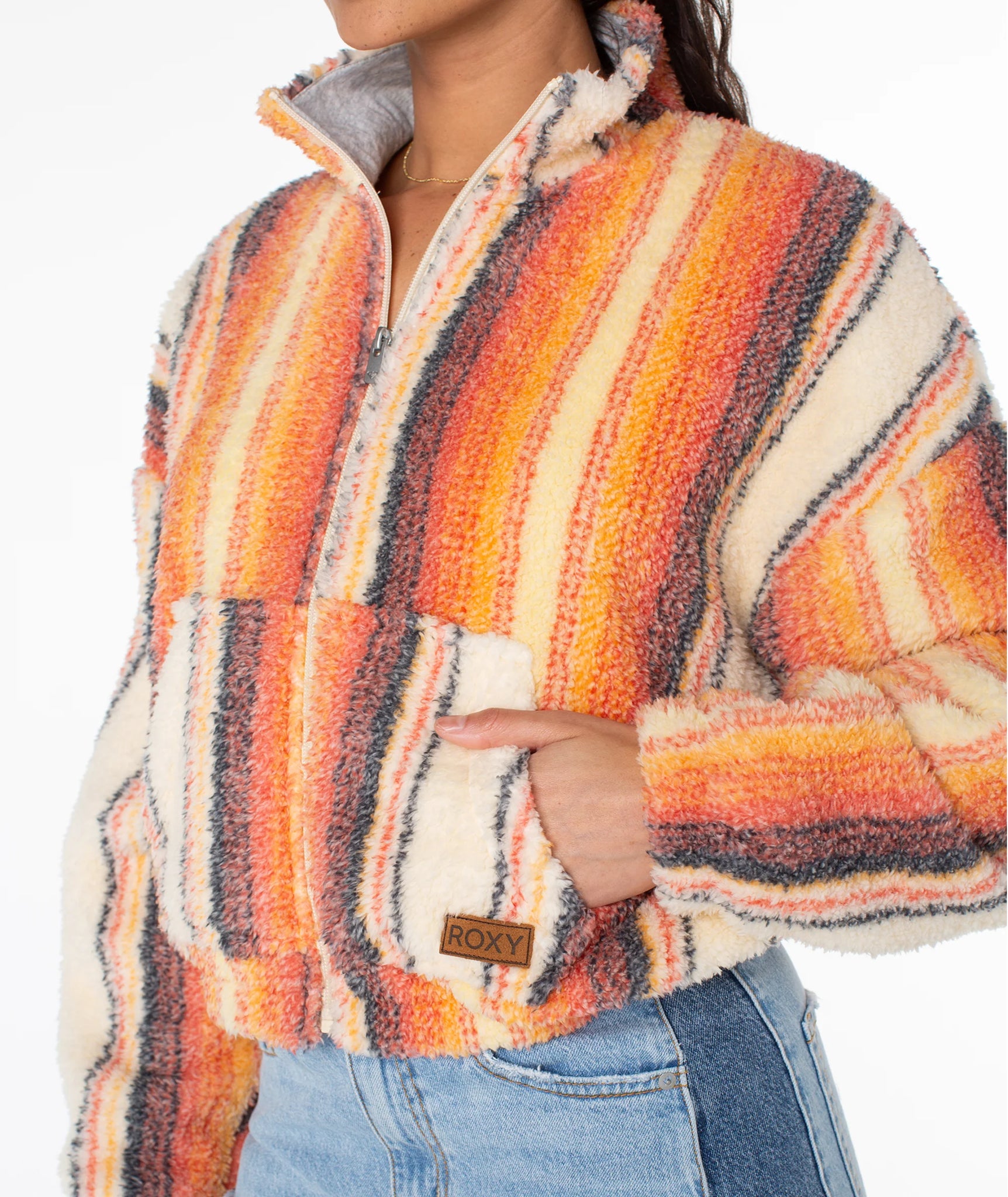 The Cold Surf zip up is a colorfully bold take on a cozy classic. Featuring a mock neck collar, cropped fit and a relaxed build, this piece channels laid-back beach days no matter the weather.
