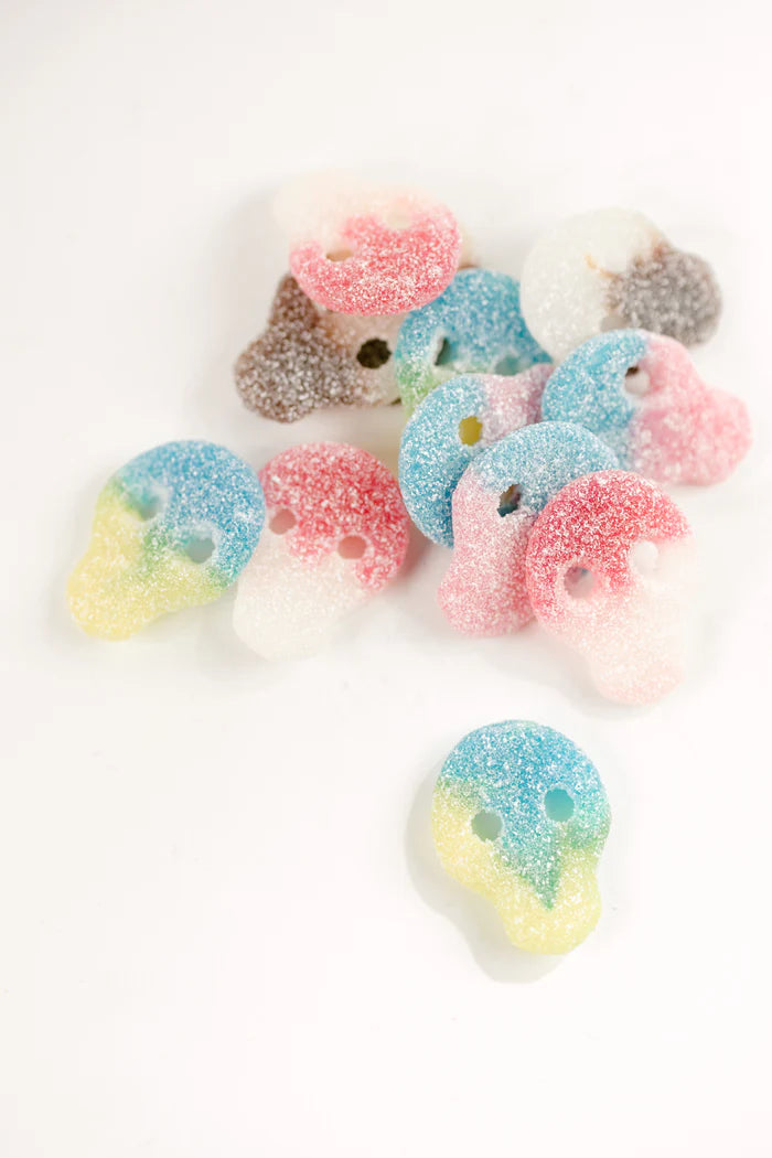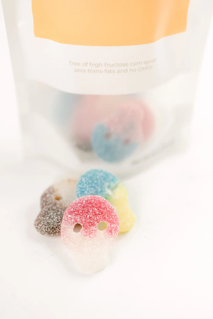 These sour scary skulls come in four delicious flavours: Sour Cola Skulls, Fizzy Bubblegum Skulls, Sour Berry Skulls and Lemon Blue-Raspberry Skulls.