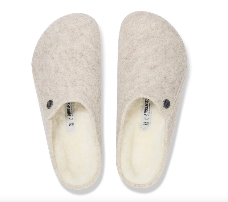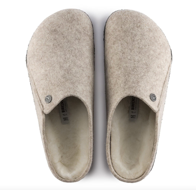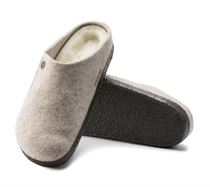 The BIRKENSTOCK Zermatt is our first true slipper. It features our iconic cork latex footbed, and to keep you extra cozy, it’s fully lined in genuine shearling that will keep your feet warm all winter long. The upper consists of soft genuine wool.